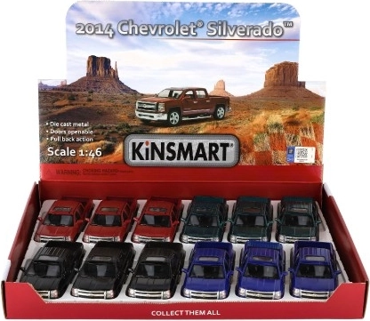 Model autića Kinsmart Chevrolet Silverado 2014 s metalnom karoserijom, 1:46, 13 cm, povratni pogon, 4 boje