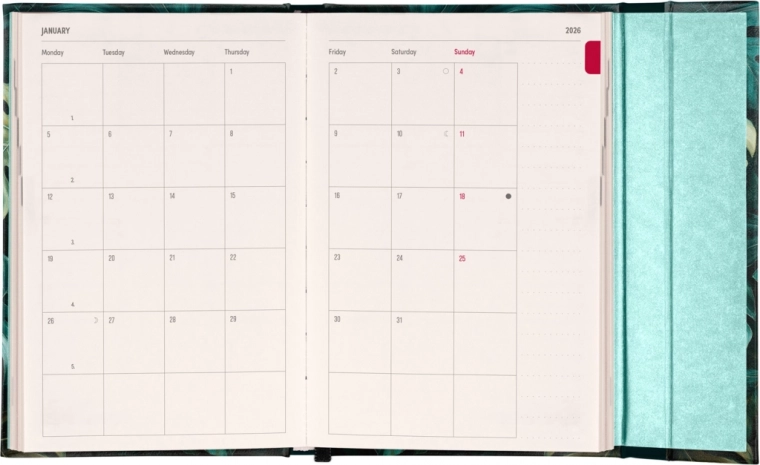 Održavajte svoje planove i zadatke sustavnim zahvaljujući ovom dnevniku Monstera 2026. Ovaj stilski i praktični dnevnik uključuje: