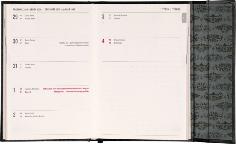 Tjedni dnevnik s praktičnim magnetskim zatvaranjem je idealan izbor za one koji žele imati svoje planove pregledno pod kontrolom. Pruža češki i slovački kalendarij i prostor za bilješke.