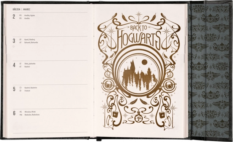 Tjedni dnevnik Harry Potter Lumos 2026 s magnetskim zatvaranjem i češkim kalendarijem. Planirajte u džepnom formatu!