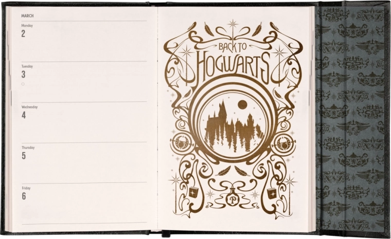 Uronite u čarobni svijet s ovim elegantnim tjednim dnevnikom inspiriranim Harryjem Potterom. Ovaj dnevnik savršen je izbor za ljubitelje planiranja i organizacije.