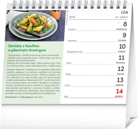 Stolni kalendar Slovačka kuhinja 2026 donosi autentičan okus slovačke gastronomije izravno na vaš radni stol. Svaki tjedan iznenadit će vas novim receptom koji su pažljivo sastavili stručnjaci za slovačku kuhinju: