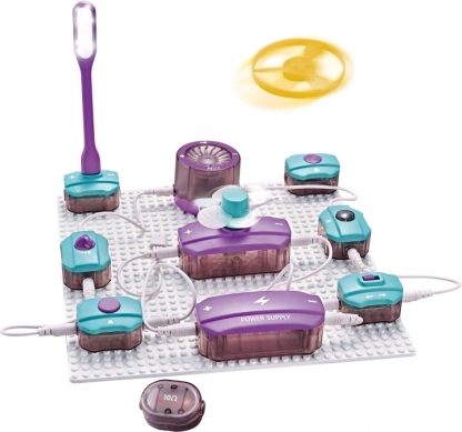 Konstruktorski set elektroničkih sklopova Electron Block izvrstan je početak u svijetu električne struje i osnova elektronike. Zahvaljujući pregledno riješenim, bojama razlikovanim modulima, djeca mogu lako sastavljati vlastite projekte – od jednostavnih spojeva do kreativnih eksperimenata s trubom/klaksonom, svjetlom ili USB napajanjem.