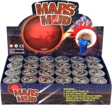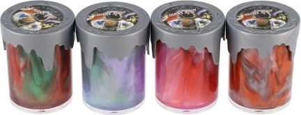 Metalizirani sluz Mars Mud razveselit će i djecu i odrasle. Ima ugodnu, polagano tekuću konzistenciju koja se odlično oblikuje, rasteže i stišće. Prozirna čašica naglašava originalne vrtloge boja i metalni sjaj.
