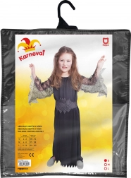 Izvrsni kostim za male vještice! Crni kostim u veličini S idealan je za djevojčice od 4 do 6 godina. Izgleda neodoljivo zahvaljujući haljini s prozirnim rukavima s motivom paučine.