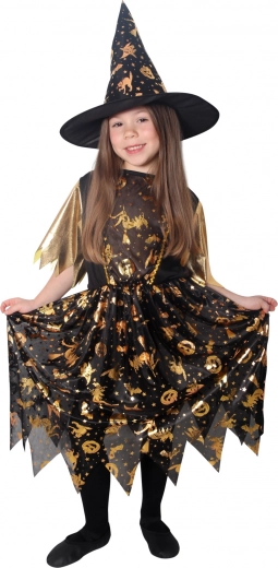 Pripremite svoju malu vješticu za Noć vještica s ovim fantastičnim crno-zlatnim kostimom, koji uključuje savršeno usklađen šešir i oduševit će svakog sudionika karnevala!