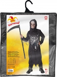 Strašan karnevalski kostim za male strašila! Ovaj kostim Kostur u veličini S idealan je za djecu od 4 do 6 godina. Sadrži crni ogrtač s bijelim otiskom kostura i kapuljaču, koji stvaraju dojam prave Smrti.