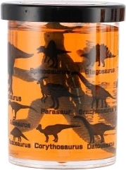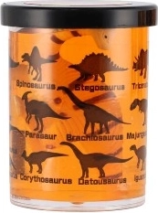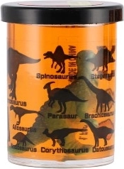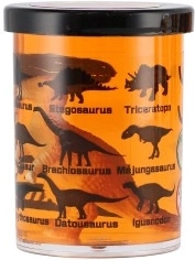 Čašica je ukrašena siluetama i nazivima dinosaura (npr. Stegosaurus, Triceratops, Spinosaurus), pa potiče učenje kroz igru. Odlično kao mali poklon, nagrada ili dodatak dječjoj zabavi.