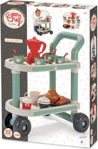 Predstavljamo kolica za doručak s dodatnom opremom, idealna za male bariste i pekare. Ovaj set sadrži ukupno 22 dijela koji pružaju sve potrebno za savršeno jutarnje osvježenje. Kolica su na kotačima, što osigurava jednostavno premještanje po sobi ili vrtu.