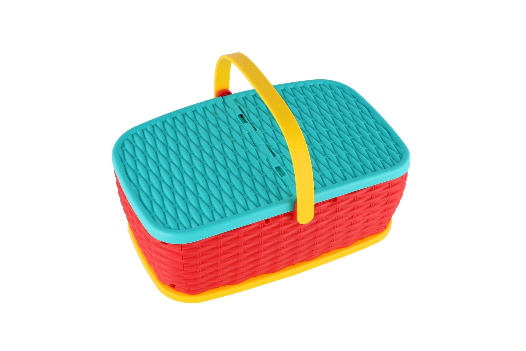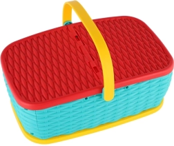 Otkrijte zabavu na pikniku s raznobojnim setom koji djecu uči osnovama pripreme hrane kroz igru. Košara s ručkama je lagana, praktična i sve drži lijepo na okupu – idealno za dom i putovanja.