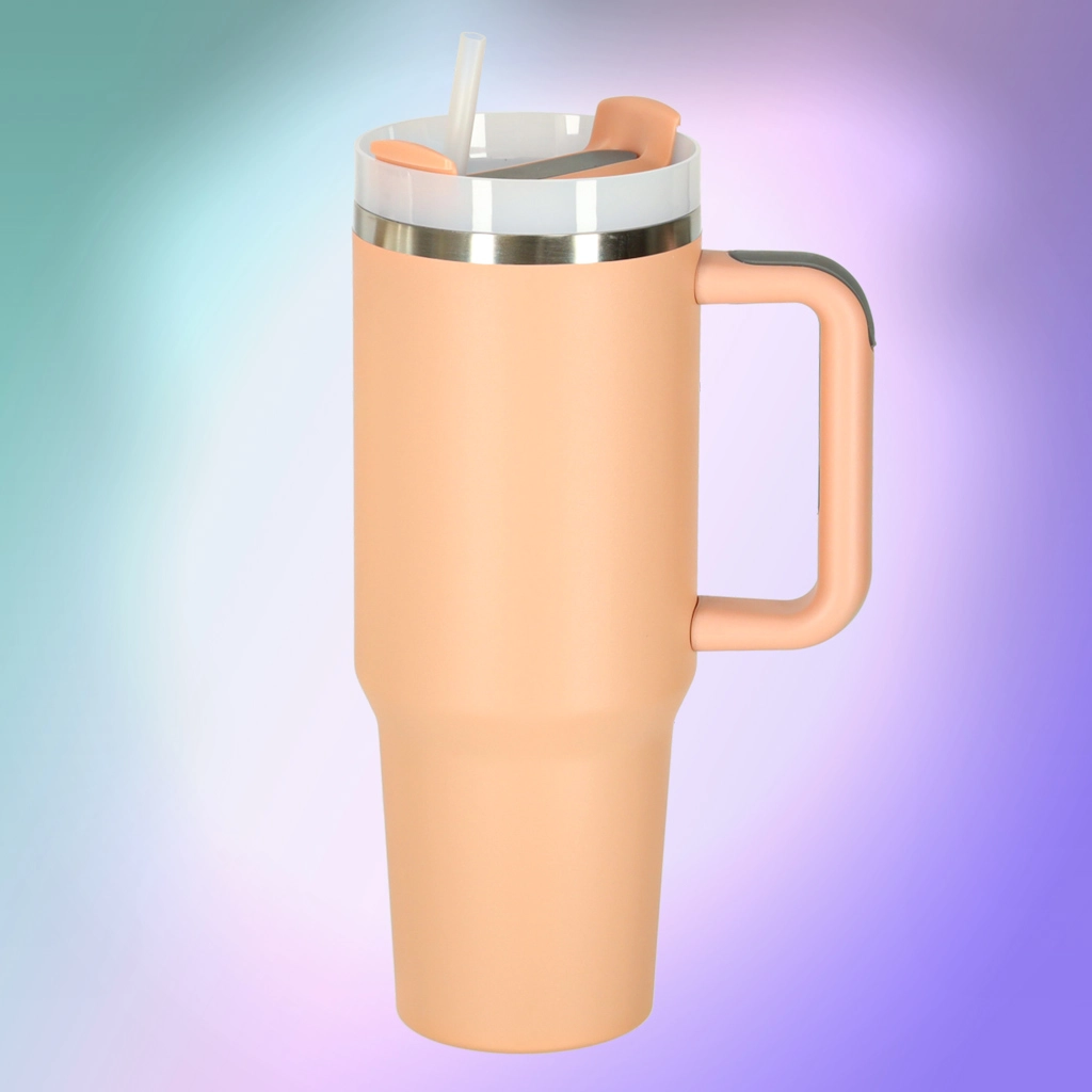 Velika termalna čaša sa slamkom i ručkom 1,2 L puderasto ružičasta