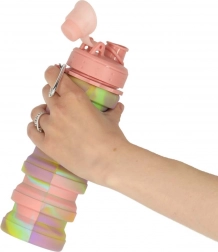 Ova sportska boca odličan je pratitelj za vaš aktivan stil života. Posjeduje podesivu zapremninu zahvaljujući sklopivoj konstrukciji, koja omogućuje punjenje od 250 ml do 500 ml. Ima zatvarajuću pipicu koja osigurava udobno pijenje bez prolijevanja, a njezin atraktivan dizajn u kombinaciji ružičaste, žute i ljubičaste boje motivirat će vas na redovitu hidraciju.