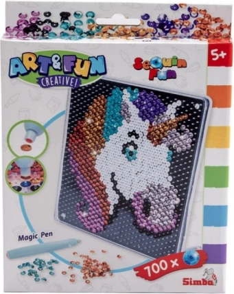Set za izradu prekrasne slike jednoroga od sjajnih šljokica, idealan za kreativnu zabavu i kao lijepa dekoracija za sobu.