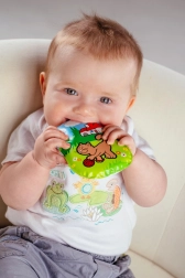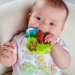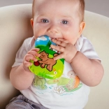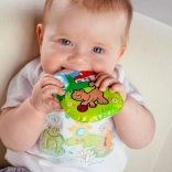 Predstavljamo mekani piskajući jastučić „Moje prve životinjice“, osmišljen za one najmlađe. Pritiskom ispušta nježan piskajući zvuk koji zabavlja djecu i istodobno razvija njihovo slušno opažanje i finu motoriku. Zahvaljujući kompaktnim dimenzijama savršeno stane u kolica, autosjedalicu i krevetić.