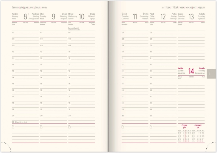 Elegantni tjedni dnevnik za 2026. godinu s jedinstvenim dizajnom i proširenim jezičnim kalendarom idealan je izbor za svakodnevno planiranje.