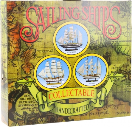 Model jedrenjaka tipa fregata je impresivna replika povijesnog broda iz doba velikih morskih otkrića. Odlikuje se visokom razinom detalja, višejarbolnom konstrukcijom i razapetim jedrima zajedno s fino izrađenim užadima.