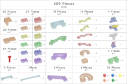 - Sadrži 209 dijelova, izrađenih od materijala otpornih na vremenske uvjete, poput blijeđenja i pucanja.