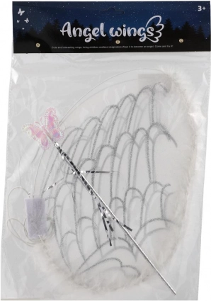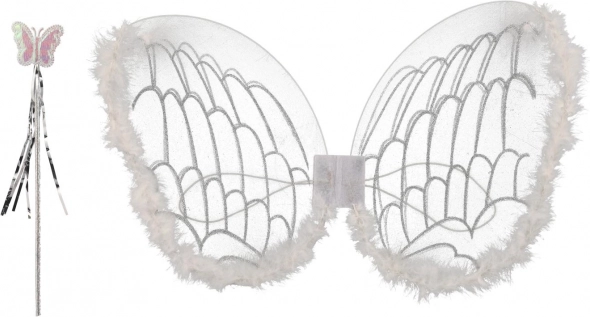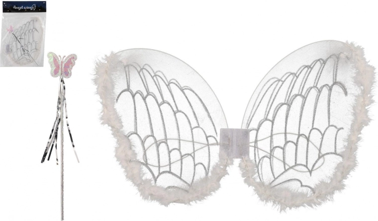 Dio seta je i stilski štapić s leptirićem i vrpcama koji upotpunjuje anđeoski ili vilinski kostim. Set je odličan za karneval, maskenbal, školske priredbe, fotografiranje ili kućne bajkovite igre. Jednostavno se stavlja i zahvaljujući univerzalnoj veličini dobro pristaje većini djece.