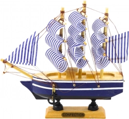 Stilski model jedrilice s klasičnom konstrukcijom idealan je za sve poklonike pomorske estetike. Tradicionalno trojarbolno jedrenje u bijelo-plavim prugama i tamnoplavi trup s bijelom prugom stvaraju efektan izgled. Zahvaljujući skladnim proporcijama i ručnoj završnoj obradi, model se ističe finim detaljima i elegantnim dojmom.