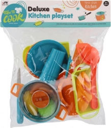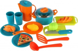 Ovaj praktični dječji set posuđa idealan je za sve male kuharice i kuhare. Zahvaljujući laganim plastičnim elementima siguran je i jednostavan za rukovanje. Djeca mogu oponašati aktivnosti odraslih i razvijati vještine tijekom zajedničke igre.