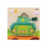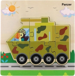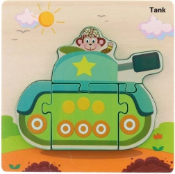 Ova drvena umetaljka donosi djeci radost otkrivanja i praktične vještine. Tema su omiljena prijevozna sredstva, zahvaljujući kojima djeca lakše pamte oblike i nazive vozila te na zabavan način razvijaju koordinaciju oko–ruka.