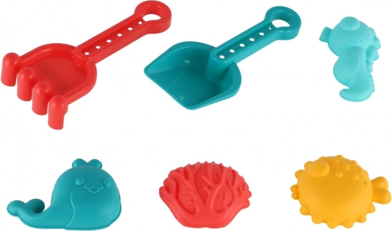 Lopatica, grabljice i kalupi pružaju djeci kompletnu opremu za izradu kolačića i dvoraca na pijesku i uz vodu.