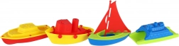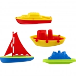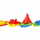 Ovaj praktični set sadrži četiri plastična brodića različitih oblika i boja, uključujući jedrilicu i motorne čamce. Brodići su lagani, izdržljivi i dobro pristaju u male dječje ruke. Zahvaljujući konstrukciji koja pluta, savršeni su za kadu i za dječji bazen.