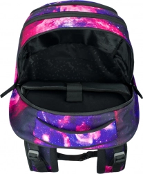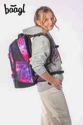 Školski ruksak BAAGL Skate max Galaxy je idealan za učenike i studente visine između 155 i 185 cm. Leđa ruksaka imaju podesivi sustav koji omogućuje podešavanje u četiri različite veličine. Zahvaljujući materijalu od recikliranog, vodootpornog tekstila i reflektirajućim elementima, ruksak je vrlo siguran i izdržljiv.