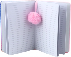 Ova posebna bilježnica oživjet će vašu knjigu uspomena zahvaljujući trodimenzionalnom efektu koji privlači poglede i potiče maštu. Prednja korica ukrašena je sjajnim ružičastim jednorogom smještenim na holografskoj pozadini, ispunjenoj pomičnim konfeti u obliku zvjezdica. Uz to, uključena je i oznaka za stranicu završena mekanom pompon lopticom, koja je istodobno funkcionalan i dekorativan element.