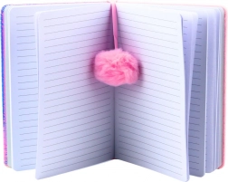 Funkcionalna oznaka stranice završena ružičastim pomponom olakšava pristup odabranoj stranici i dodaje čaroban dekorativni element. Unutra se nalazi 80 liniranih listova, idealnih za dnevnik, školski predmet, organizator ili kreativne zapise.