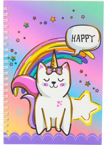 Ovaj šareni notes s motivom mačka-jednoroga i duge idealan je suputnik za svakodnevne zapiske, bilješke i dječje tajne. Intenzivne pastelne boje i zabavne ilustracije potaknut će vašu kreativnost i sigurno izmamiti osmijeh na lice.
