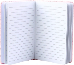 Iznutra se nalazi 80 listova u linijskom rasporedu, pogodnih za pisanje dnevnika, bilješki, crtanje ili planiranje. Kompaktan format osigurava da se lako smjesti u torbicu ili ruksak, što je čini odličnim suputnikom za svakodnevne aktivnosti.