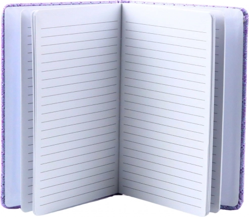 Stilska i praktična brokatna bilježnica u formatu B6 s ljubičastim koricama i našivcima idealna je za svakodnevne zapise. Njezin kompaktan dizajn omogućuje lako nošenje u torbi.