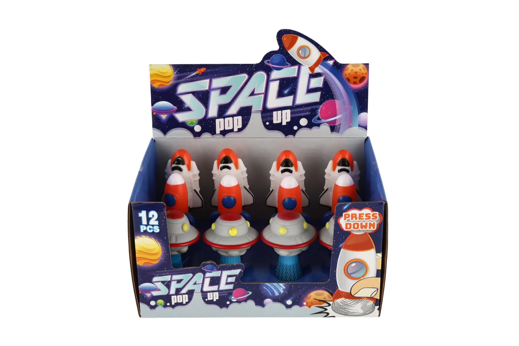 Skakajuća igračka sa svemirskim motivima savršen je izbor za brze igre, mini utrke i vježbanje refleksa. Dovoljno je pritisnuti, položiti i gledati kako igračka iskače – svaki put drugačije i uvijek zabavno. Zahvaljujući kompaktnoj veličini od 9 cm stane u džep i može se ponijeti bilo kamo.