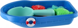 Plavi brodić stabilno pluta i može prevoziti druge dijelove. Djeca s njim mogu prevoziti životinjice, zahvaćati vodu i smišljati vlastite priče.