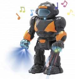 Zabava s ovim plastičnim robotom visine 22 cm nema kraja. Jednostavnim pokretanjem stavit ćete ga u pogon i postat će neizostavni dio svake igre. Prikladan za djecu od 3 godine, ovaj robot može se boriti protiv uljeza ili štititi svemirsku bazu. Sjajna je igračka koja potiče maštu mališana i njihove motoričke vještine. Aktivacijom robot nudi: