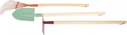 S ovim četverodijelnim setom vrtnog alata „Tiny Garden” i stiliziranom kantom za zalijevanje spremni ste za akciju – u vrtu, pješčaniku ili na plaži! Set sadrži grablje, lopatu, grablje za lišće i kantu s praktičnim raspršivačem. Alat je izrađen od izdržljivih materijala i idealne je veličine za dječje ručice. A kad je posao gotov? Zahvaljujući petljama na kraju drški jednostavno ga objesite i sve je pospremljeno.