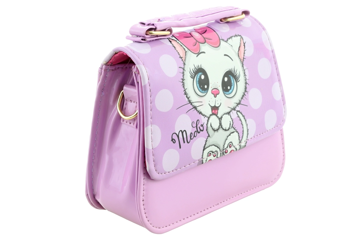 Stilska i vesela torbica s motivom mačkice koja će vašem outfitu dodati razigran dojam. Zahvaljujući svom sjajnom površinskom sloju, torbica je ujedno i modni dodatak.