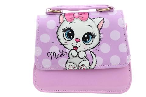 Vesela torbica s mačkicom i sjajnom površinom. Idealna za stil i originalnost. Dimenzije 17x15x6,5 cm.