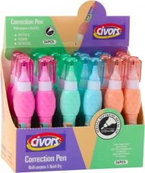 Brzosušeća bijela tekućina kojom je korektor ispunjen savršeno prekriva tintu i kemijsku olovku. Obujam 7 ml osigurava dugotrajnu upotrebu i učinkovito prekrivanje. Pakiranje sadrži 24 komada, boja se odabire nasumično.