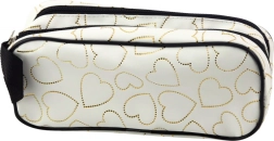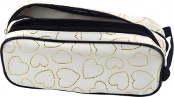 Bijela školska pernica sa zlatnim srčecima, dvodijelna