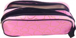 Pernica u ružičastoj boji s motivom zlatnih srca pruža moderno i praktično rješenje za učenike koji žele red u svom priboru. Dvije odvojene pregrade pomažu održati preglednost i red.