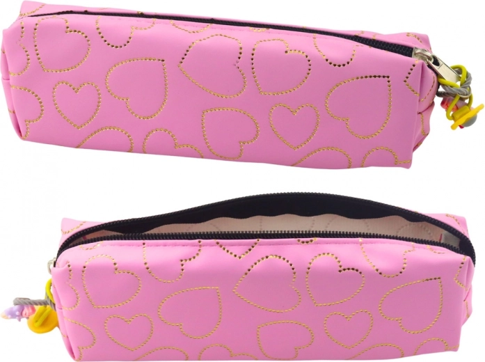 Ružičasta pernica sa zlatnim srcima stilski je i praktičan dodatak za svakog učenika ili profesionalca. Odlikuje se kompaktnom veličinom i laganom konstrukcijom, što je čini izvrsnim izborom za pohranu najvažnijih pribora za pisanje kao što su kemijske olovke, olovke, flomasteri ili markeri. Njezine dimenzije omogućuju lako prenošenje u ruksaku ili torbi za posao.