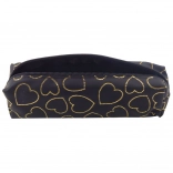 Stilizan i praktičan pernik u crnoj boji sa zlatnim srcima idealan je za školu, fakultet ili ured. Njegov kompaktan format i lagana konstrukcija omogućuju jednostavno spremanje potrebnog pribora za pisanje.