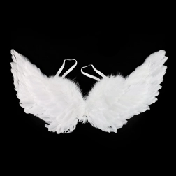 Lagana i elegantna anđeoska krila prekrivena bijelim perjem, idealan dodatak uz kostim anđela. Odličan izbor za sv. Nikolu, božićne priredbe, fotografiranja ili karnevale. Elastične trake osiguravaju udobno nošenje.