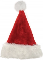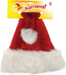 Klasična crvena božićna kapa s bijelim obrubom i mekim plišanim materijalom idealan je dodatak za blagdansko razdoblje.