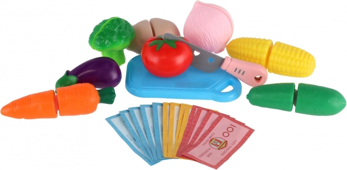 Naš set za rezanje povrća nudi realističnu igru za djecu koja vole oponašati odrasle. Cijelo je povrće spojeno čičkom, što omogućuje sigurno "rezanje" plastičnim nožićem. Set sadrži različite komade povrća i dasku, zahvaljujući čemu djeca mogu razvijati svoju kreativnost i igrati se kao profesionalni kuhari.
