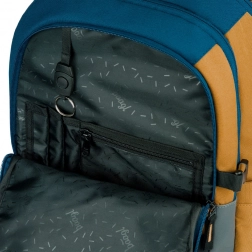 Ruksak ima tri odvojene komore na zatvaranje, unutarnji organizator i podstavljeni džep za 15-inčni prijenosnik ili tablet. Izrađen je od recikliranog, vodootpornog materijala s reflektirajućim elementima koji osiguravaju sigurnost pri smanjenoj vidljivosti.