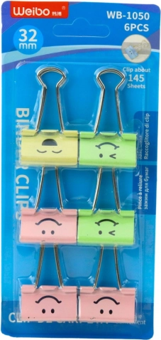 Set uredskih spajalica veličine 32 mm spaja praktičnost s estetikom i humorom. Svaka spajalica ukrašena je nasmijanim licem, što je čini jedinstvenim dodatkom za svakodnevnu organizaciju dokumenata – idealno za posao i školu.