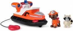 Zuma, visok više od 5 cm u svojoj vatrogasnoj odori, spreman je spasiti stvar. Vatrogasni čamac opremljen je spasilačkim kolutom pričvršćenim na užetu, što jamči puno akcijskih avantura. Zumi dodatni šarm daje i mali rakun kojeg treba spasiti. Djeca mogu pritisnuti gumb za ispaljivanje spasilačkog koluta u koji se rakun savršeno uklapa. Zahvaljujući originalnom stilu Psi Patrola, ova igračka izgleda baš kao u seriji, potičući djecu na proživljavanje avantura.